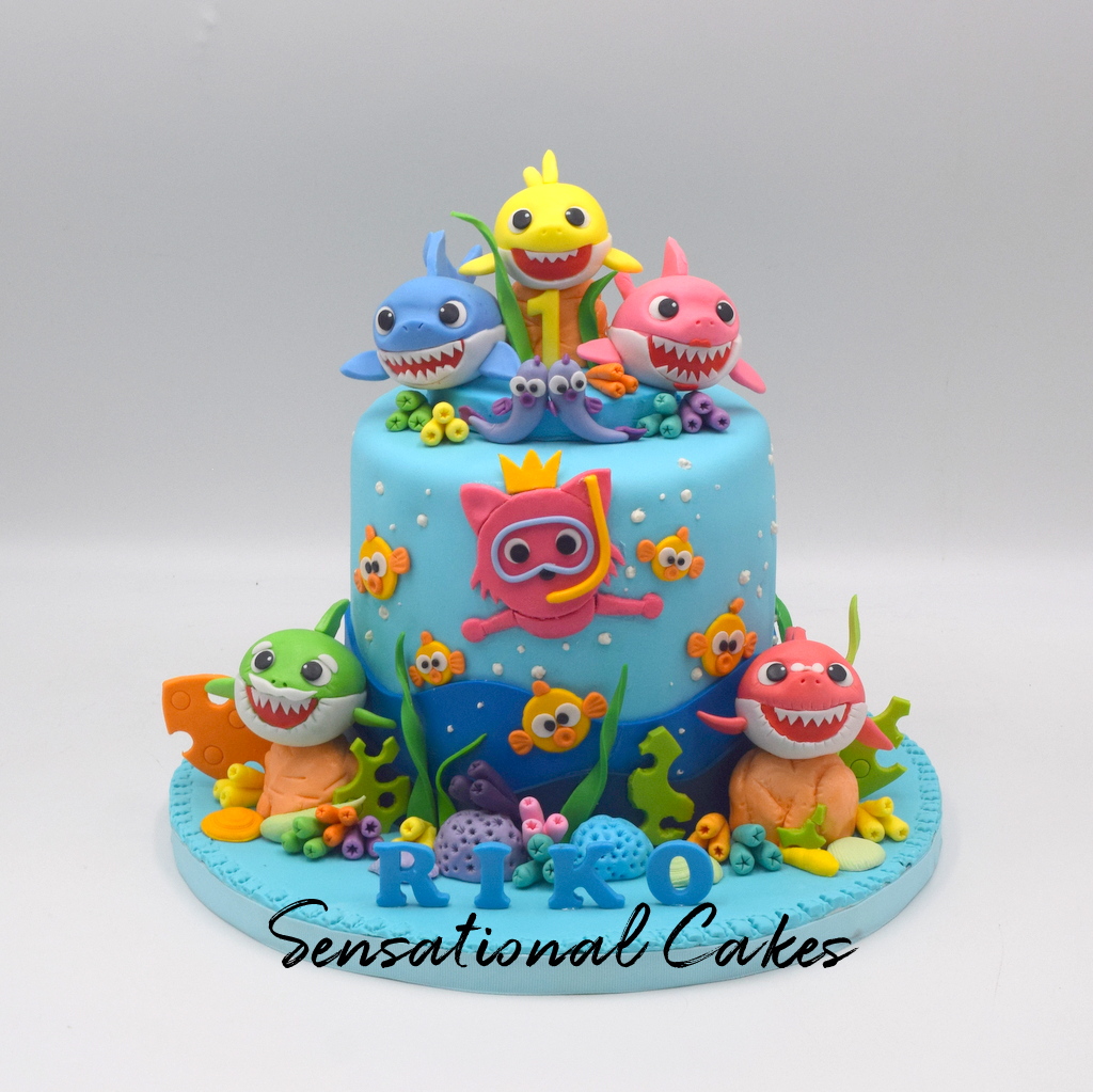 Baby Shark Themed Cake For Baby Boy Ss Blissful Cakes